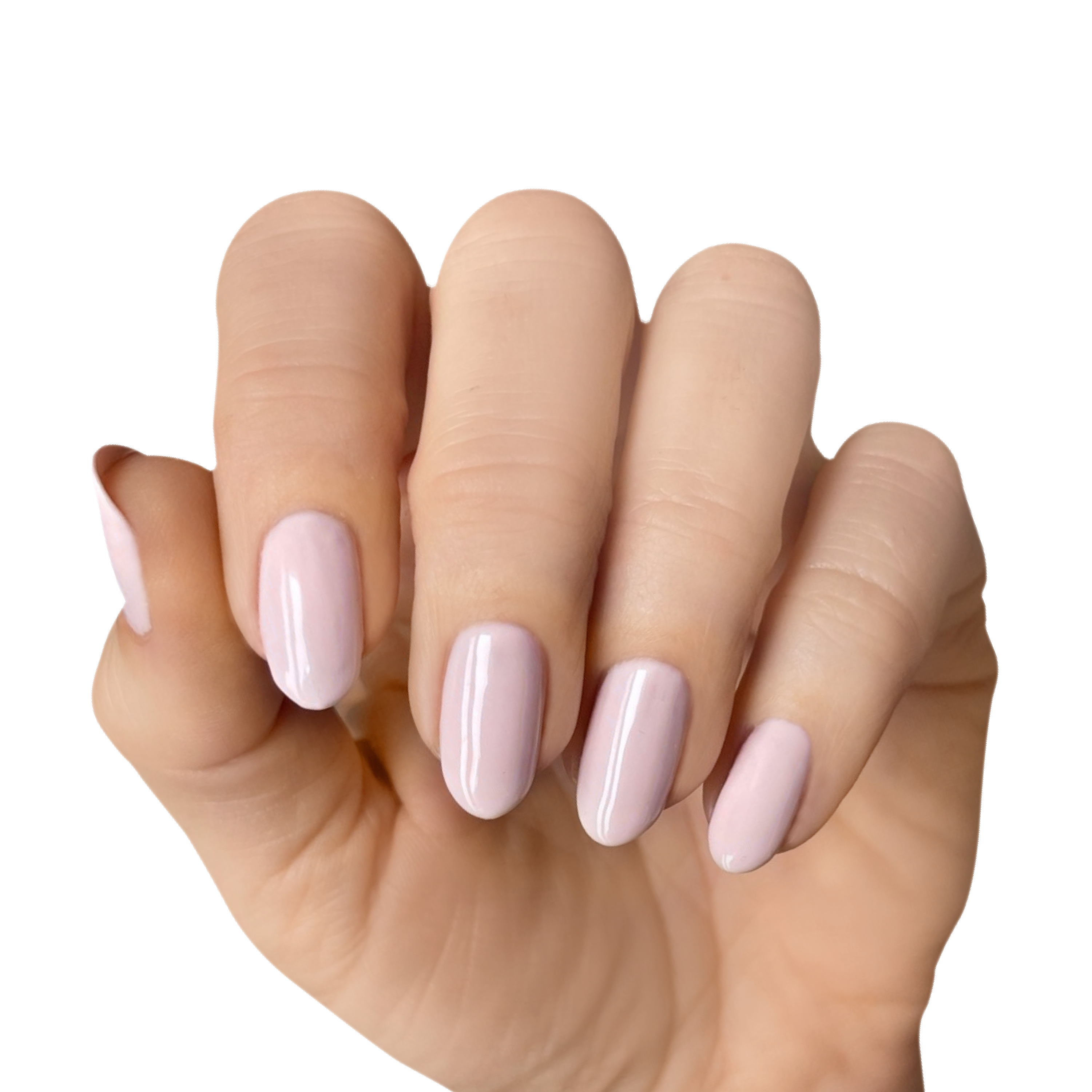 Powder pink. Pale. Opaque. Cool.